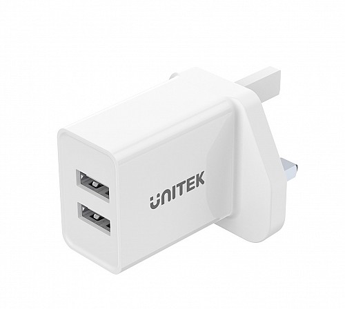 This portable USB charger charges 2 USB devices at the same time, delivers up to a maximum shared output of 12W.